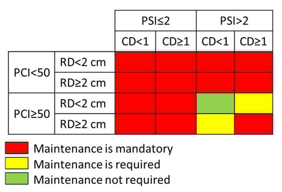 - Macorig, D.; Ristori, C.; Bertoli, V. Development of a method to evaluate the priorities of intervention on the road network of the Province of Pisa. Transp. Res. Procedia 2020, 45, 103–110. [Google Scholar] [CrossRef]