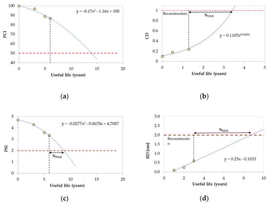 - the timing of maintenance is defined rationally through predictive equations and interpolation of distress survey data, while current practice mostly relies on predetermined time intervals that often fail to ensure a good quality of the pavement surface continuously over time;