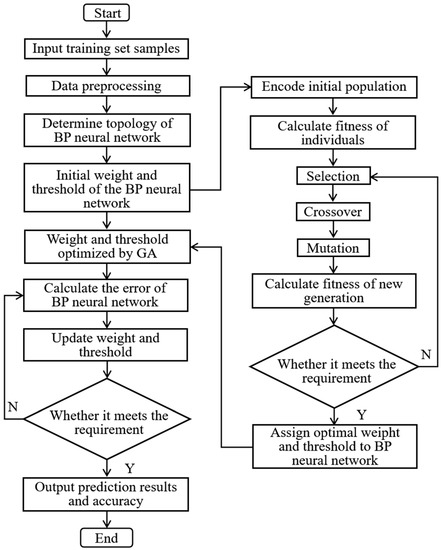 The flowchart of the GA-BP prediction method is shown in Figure 3.