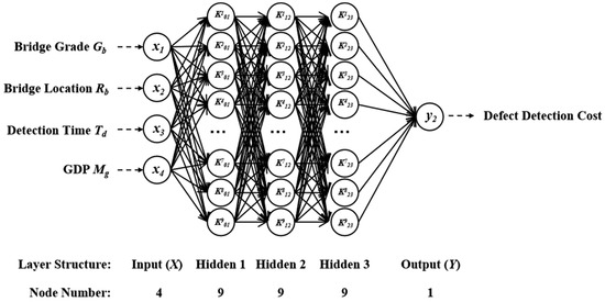 The service life of bridge structures is typically several decades and possibly more than a century. To guarantee the safety, reliability, and performance of bridges, bridge managers conduct activities such as monitoring, defect detection, and maintenance [1]. In examining the sustainability of bridge construction and the efficiency of the investment cost, it is important to balance the operating costs incurred by the various management activities during the service period and the construction costs of the bridge. Choosing design schemes based on the construction cost alone does not reflect future funding demand, nor is it consistent with the direction of sustainable development [2]. Studying the lifecycle cost of a bridge can provide huge long-term economic benefits, identify various future expenditures, and provide a scientific basis for economic decisions [3]. Due to the uncertainty of the operating costs, effective cost estimation and prediction methods are needed to evaluate the overall cost of different bridges over their service life, as these allow managers to make the most appropriate decisions [4]. Bridge operating costs are mainly composed of defect detection costs, maintenance costs, and user costs [5]. Therefore, the efficient and accurate prediction of defect detection costs is helpful to the calculation and control of operating costs.
