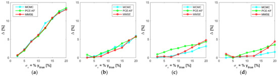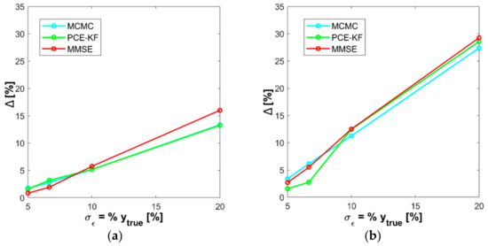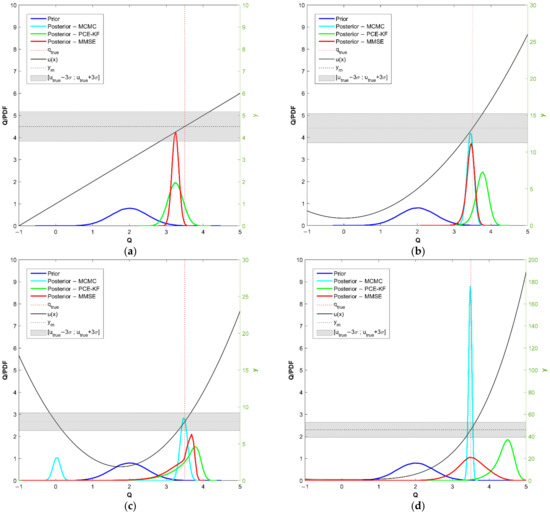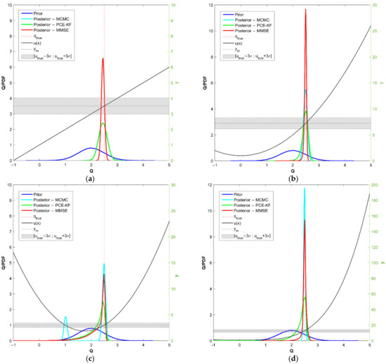 where and are the PCE basis functions, and are the corresponding PCE coefficients and is a set of standardized Gaussian random variables. Then, assuming an additive error (Equation (3)), the measurement model Y can be written with the PCE: