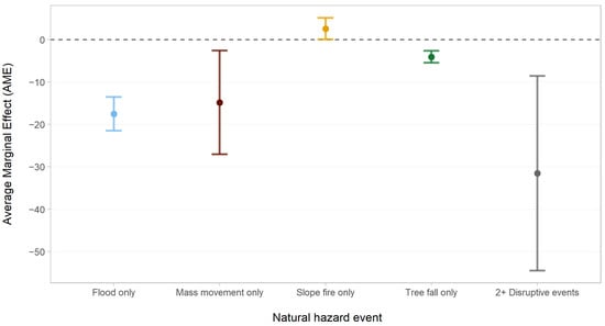 Average marginal effects of natural hazards on traffic in the negative binomial regression.