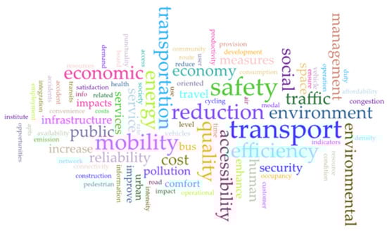 The proposed indicators were considered under the criteria of dimension, namely mobility, efficiency, reliability, accessibility, environment, and safety. The full list of indicators was collected from Table 2 for reviewing and considering the APTS-related, which resulted in 189 indicators. The criteria for indicator contemplation are presented in Table 4.