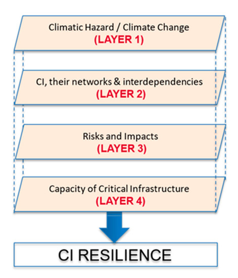 - Capacities of CI, such as the ability to anticipate and reduce the impact; ability to buffer and bear; ability to be repaired easily and efficiently included in the final Layer 4. Resilience parameters, i.e., properties that indicate different capacities, also included in Layer: anticipatory the climate hazard, absorbance of the impacts, coping with the impacts, restoration to normality, and adaptive capacity.