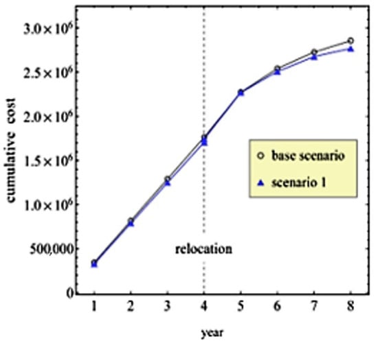 | Base scenario without relocation | 1st to 6th | 11 + 650 | 1.469,784.12 € | 1,469,784.12 € | 340,308.53 € | |