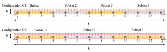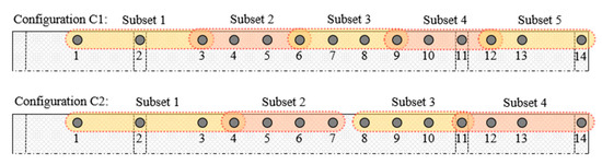 Two different decentralized sensor subset configurations are studied, named C1 and C2, as illustrated in Figure 9. The reasons that guided the choice of these configurations are similar to those described in Section 4.2 for the numerical benchmark.