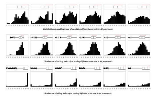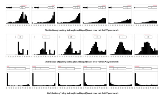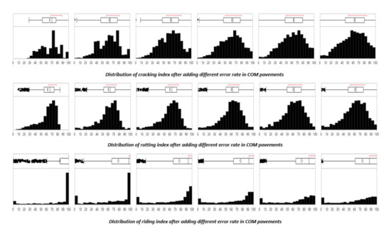 - Saliminejad, S.; Gharaibeh, N.G. Impact of Error in Pavement Condition Data on the Output of Network-Level Pavement Management Systems. Transportation Research Record. J. Transp. Res. Board 2013, 2366, 110–119. [Google Scholar] [CrossRef]