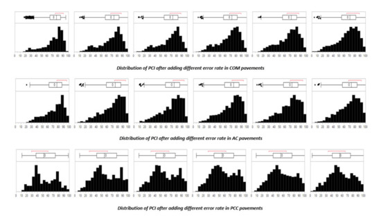 - Bektas, F.; Smadi, O.G.; Al-Zoubi, M. Pavement Management Performance Modeling: Evaluating the Existing PCI Equations. Institute for Transportation at Iowa State University Project Reports. 2014. Available online: https://lib.dr.iastate.edu/intrans_reports/100/ (accessed on 12 January 2021).