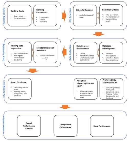 Smart cities ranking target to compare the performance of each city in every component of smart city aspect, e.g., economy, governance, environment, livability, mobility, and people. These components are assigned same weightage to calculate the smart score. Whereas the preferred cities ranking includes the preferences of people towards their choice of an ideal city to live. Not only the local authorities, but small and medium enterprises, corporations, utility providers and civil society groups develops the smart cities []. Therefore, the ranking perspective must include all aspects of cities’ functioning. The procedures to assign rankings are described in the following section.