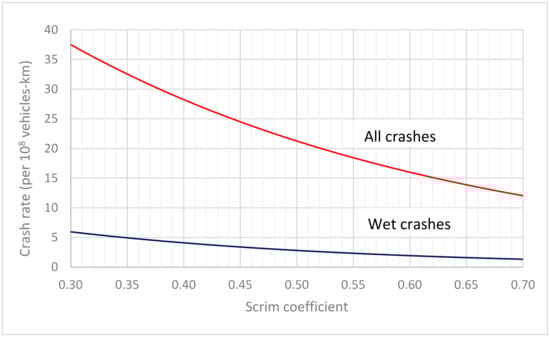 Sideway-force Coefficient Routine Investigation Machine (Scrim) coefficient vs. crash rate (adapted from []).