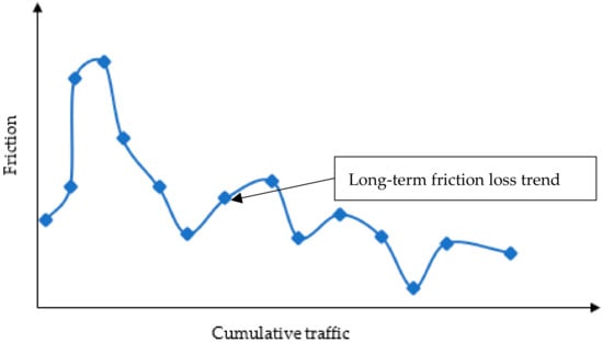 Possible development of friction over time for asphalt pavements (adapted from []).