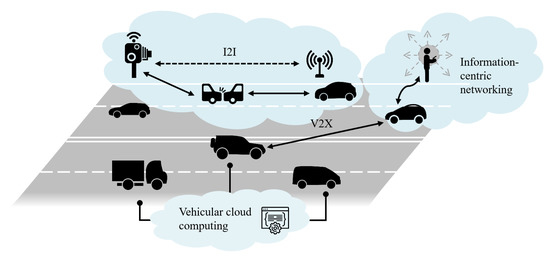 - Olariu, S.; Eltoweissy, M.; Younis, M. Towards autonomous vehicular clouds. EAI Endorsed Trans. Mob. Commun. Appl. 2011, 1, e2. [Google Scholar] [CrossRef]