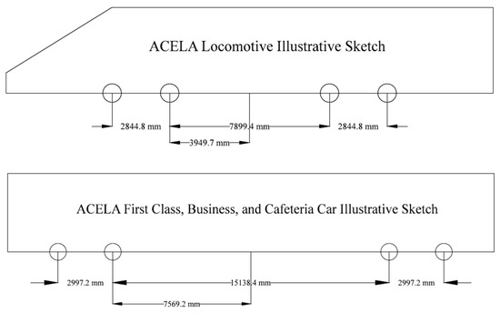 ACELA locomotive and passenger car axle spacings.