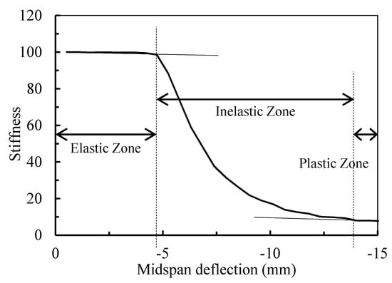 Numerical stiffness–midspan deflection relation of the control beam.