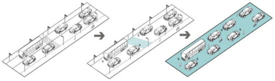 Supposed transformation regarding the road section after the diffusion of the CAVs [48].