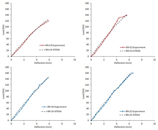 Figure 6 shows comparisons of the experiment versus numerical simulation of load-deflection behaviours. The similarity between the numerical curves with the experimental load-deflection behaviours indicates the capability of the numerical simulation to capture the behaviour of the investigated beams.