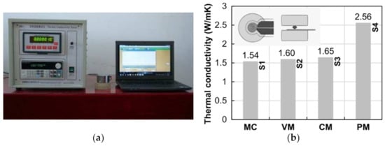 Thermal conductivity test. (a) DRE thermal conductivity parameter test machine. (b) Test results.