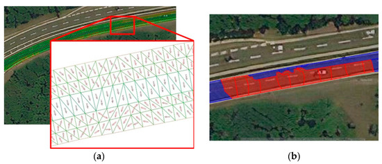 The vehicle travelled a number of times at different average velocities (20, 50, 70, 90 km/h), with a constant acquisition frequency (976 kHz). The output data are point clouds (Figure 4a) directly georeferenced in the Italian cartographic system (UTM33/RDN2008).
