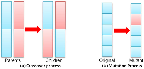 This optimization technique depends on mimicking the natural reproduction process of living creatures whose children inherit the genes of their parents. The natural selection law by Darwin states that, in a group of individuals, the most adapted one to the surrounding environment is the most expected survivor. Accordingly, GA is based on a similar concept, the most fitting solution to certain optimization conditions is the most optimized one. To find the optimum solution for a certain problem with certain conditions, called a “Fitting function”, the process begins with generating a random set of solutions and testing each solution’s quality. Then, the most fitting solutions (the ones with high quality) survive to form the next generation, while the others will be canceled. In order to maintain the same population size, the survivors are married from each other to generate new individuals (solutions); this process is called “crossover”. Sometimes, natural errors occur during inheriting the genes, called “mutation” in GA. The mutation is intentionally carried out with a certain percentage to mimic the biological process. Figure 7 illustrates the concepts of “crossover” and “mutation”. Generation after generation, the average fitness of the population increases until a certain individual (solution) reaches an accepted fitness (accuracy) [1].