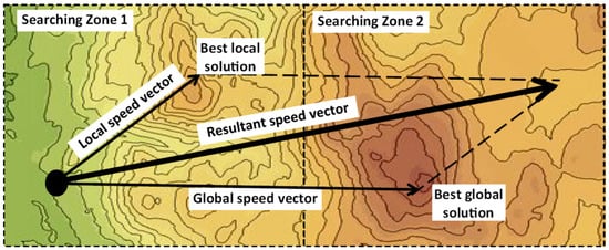 The communication protocol between the individual depends on the mimicking creature; that is why PSO is a large umbrella that covers many sub-techniques such as ant colony optimization (ACO), grasshopper optimization algorithm (GOA), salp swarm algorithm, artificial bee colony (ABC), crow search algorithm (CSA), whale optimization algorithm (WOA) and firefly algorithm (FA). Figure 9 describes the main concept of this technique [1].