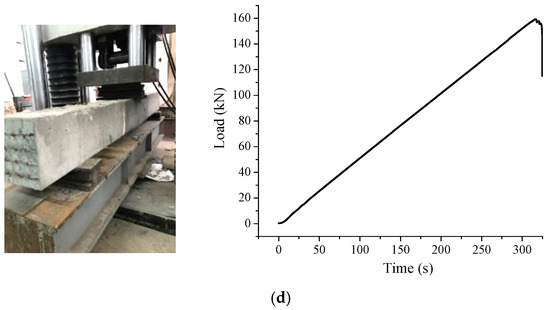 Results of positive bending moment test. (a) Test load for first crack (PSB1); (b) Test load for first crack (PSB2); (c) Maximum test load (PSB1); (d) Maximum test load (PSB2).