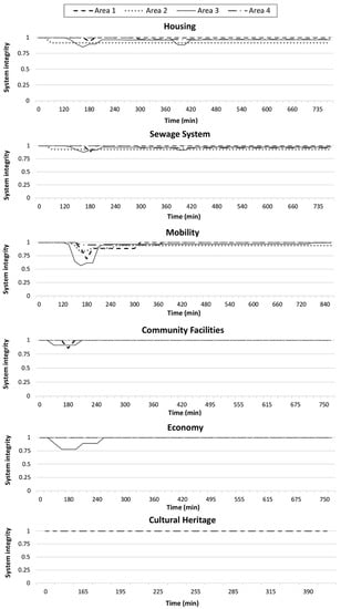 In the Figure 7, the System Integrity Index is plotted in graphs presented for each of the systems considered for the resilience assessment of the current situation.