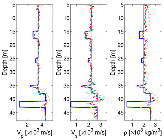 - Köhn, D.; De Nil, D.; Kurzmann, A.; Przebindowska, A.; Bohlen, T. On the influence of model parametrization in elastic full-waveform tomography. Geophys. J. Int. 2012, 191, 325–345. [Google Scholar] [CrossRef]