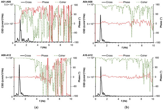 CSD of sensors in x direction (a) at different levels and (b) at the same level (the coherence varies in [0,1]).
