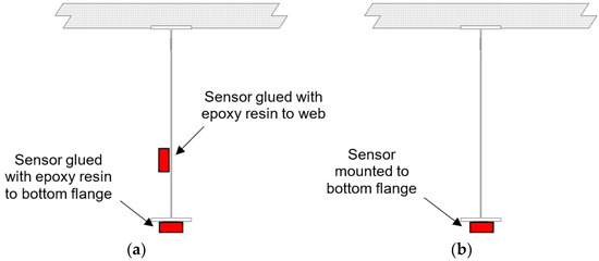 Fiber optic sensor configurations: (a) web-and-flange array; (b) flange-only array.