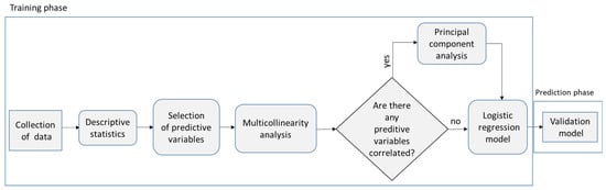 To evaluate the quality of the fitted models, the r2 coefficients of Cox & Snell and Nagelkerke were used, as well as the sensitivity and specificity. The binary logistic regression was performed by using IBM SPSS statistics software, version 25. With the SPSS statistical software, it is also possible to compare the observed values with the predicted values by fitted models. The resulting comparisons give the total percentage of prediction success of the model. The modeling is performed with data inspections of the N−2 instant times and the validation of the obtained model are made using the last two data inspections.