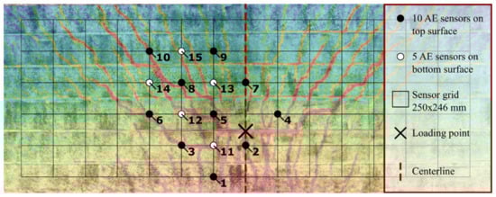 AE sensor plan based on the crack pattern of OT test 1.