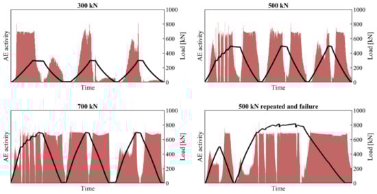 In order to enable the described AE analysis, a load test must involve repetition of load cycles and studies of load history. In many cases, the cyclic loading protocol described in the ACI 437.2M-13 [20] is ideal for AE measurements [43].