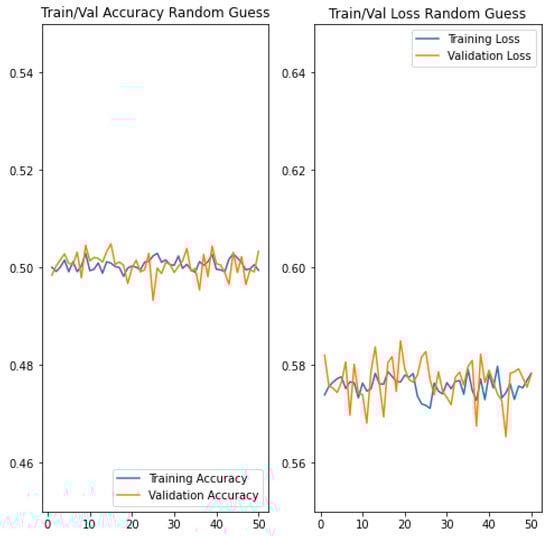 We also trained a random guess classifier which forms the baseline against which the performance of our bespoke CNN models was compared. This was deemed necessary due to the absence of ‘reliable’ and ‘reproducible’ existing work to perform a direct comparison. All experiments were conducted in 50 epochs to obtain the best parameter sets. Performance evaluation was based on and cross-entropy observed during model training, validation, and testing.