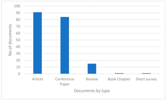 Figure 2. There are 91 article papers and 84 conference papers, followed by 15 review papers, 1 book chapter and 1 short review.