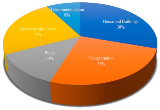 As shown in Figure 3, the majority of the frameworks focused on the housing and building infrastructure (32%). Other frameworks focused on transportation (26%), electricity and power (23%), water (11%), and telecommunication (8%) sectors.