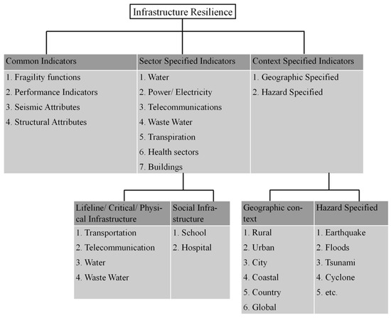 Resilience indicators should also be assessed in accordance with industry or system professionals for each specific industry [7]. Specific indicators and matrices can be developed for the specified critical infrastructure to investigate the risk to critical infrastructure, and they need to be validated for each organization by a particular sector and experts [44]. However, Petrović et al. [90] considered generic resilience indicators based on the criteria that the indicators should not be related to a specific hazard or specified critical infrastructure to enhance critical infrastructure interconnectivity. Increasing the number of indicators improves the coverage, but it becomes complex. During a disaster, it is assessed that humans can handle about three indicators [91].