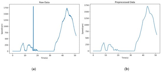 The original rotational speed data and the data after outlier processing and data smoothing are shown in Figure 4.