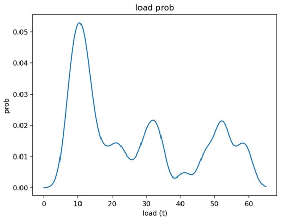 In probability statistics, it is necessary to analyze the collected data to solve its underlying probability density. The method used is usually parametric method or non-parametric method. The parameter method needs to assume that the sample data conforms to a distribution law, and then solve the parameters in this distribution law [19]. The non-parametric method does not require the assumption of a specific form of the distribution function, and the probability density estimation results are determined by the data itself [20]. For the load spectrum of the crane, because the weight of the transported cargo is unknown and completely random, the spectrum may have multiple peaks and may change with time. This makes it infeasible to use a preset probability distribution for estimation, whereas kernel density estimation does not need to preset a probability distribution and can achieve better results. As a result, the non-parametric method of kernel density estimation is chosen to calculate the load spectrum of the crane lifting weight.