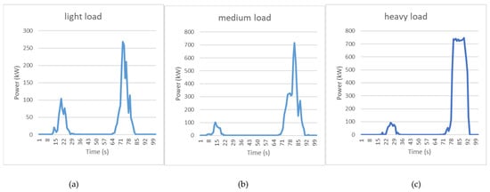 Energy consumption under different loads: (a) light load, (b) medium load and (c) heavy load.