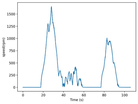 The speed signal is obtained by a sensor mounted on the coupling between the gearbox and the motor of the trolley mechanism and is able to reflect the fluctuation of the trolley motor speed over a period of time. A simple analysis of the speed data shows that there are obvious skipping phenomena in the signal collected on site, and the signal jitter is strong, shown in Figure 4, which will create obstacles for the subsequent analysis and calculation. Therefore, the speed signal needs to be preprocessed.