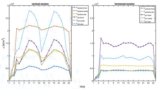 - On the sidewalls, the movement energy was mainly consumed by friction with the wooden walls since high vertical dynamic in combination with pronounced horizontal tensions appeared in these spots. In the center, the movement energy caused a high material pressure which can be concluded from the reduction of the dynamic and the rising static share in tension from top to bottom.