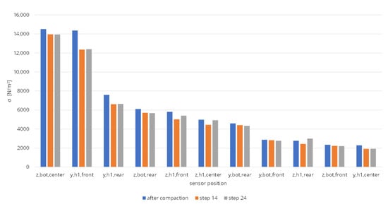 - The residual pressure appears at the bottom of the ballast box and accumulates after the loading cycles. The residual stresses amount to up to 60% of the maximal ones.