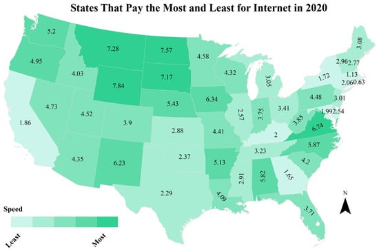 Figure 2 illustrates the varying costs residents incur for fixed broadband services per Mbps across different U.S. states in 2020 [17]. Notably, a significant imbalance exists, with states characterized by extensive rural regions (e.g., those in the Midwest) tending to have higher costs compared to states with predominantly urban areas (e.g., those along the coast). Despite recent reductions in per-megabit service prices [20], this regional imbalance persists. Additionally, as detailed in Table 3, our case study (refer to Section 4) highlights that the two cities under examination experience relatively more expensive internet services when compared to the five largest cities in the United States [21].