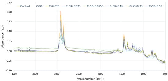 FTIR spectra of asphalt binder with different sulfur contents.