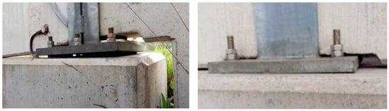 For example, a fastening system with completely lost or very little preload force has the negative consequence that the train-induced stress variation range becomes very large, and high fatigue damages result. In contrast, a fastening system with a high preload force has a positive consequence in which the stress variation range becomes very small, i.e., fatigue is not relevant in this case. The defective installation conditions of the NB steel posts might also lead to the eccentric loading of the threaded bolts, which means that in addition to the normal force, a bending moment acts on the threaded bolts, which also leads to accelerated fatigue damages. One of the most important execution deficiencies is the fastening of the NB steel posts to the concrete edge beam with an Insufficient preload force.