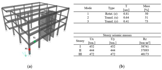 (a) 3D finite element model and (b) dynamic characteristics of the structure.