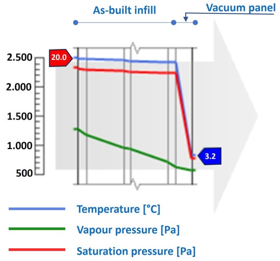 Each insulating panel is composed of a core, mainly of fibreglass, and a special jacket in fibreglass and an aluminium fabric that makes it much more resistant to cutting and erosion. This material has an extremely low conductivity, equal to 0.002 W/mK, which makes it possible to work even with much lower thicknesses than traditional EPS materials. With this intervention, it is possible to improve the transmittance of the upgraded infill walls from 1.031 to 0.039 W/m2K (Figure 17).