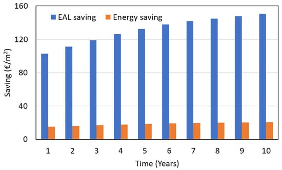 Savings in terms of EAL and energy for the case of RC = EUR 1450/m2.