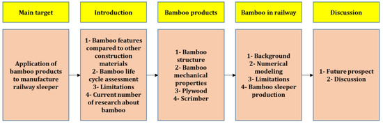 Paper outline, including each step to review the potential of bamboo products for railway sleeper deployment.