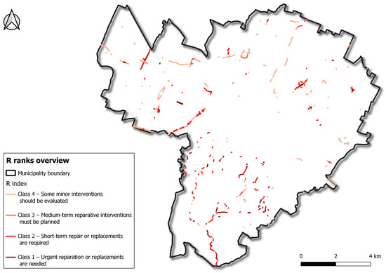 As a factorial product of the coefficients, R ranks the maintenance priority per each barrier. In order to facilitate priority recognition, four classes were defined. The different ranks and classes are summarized in Table 3.